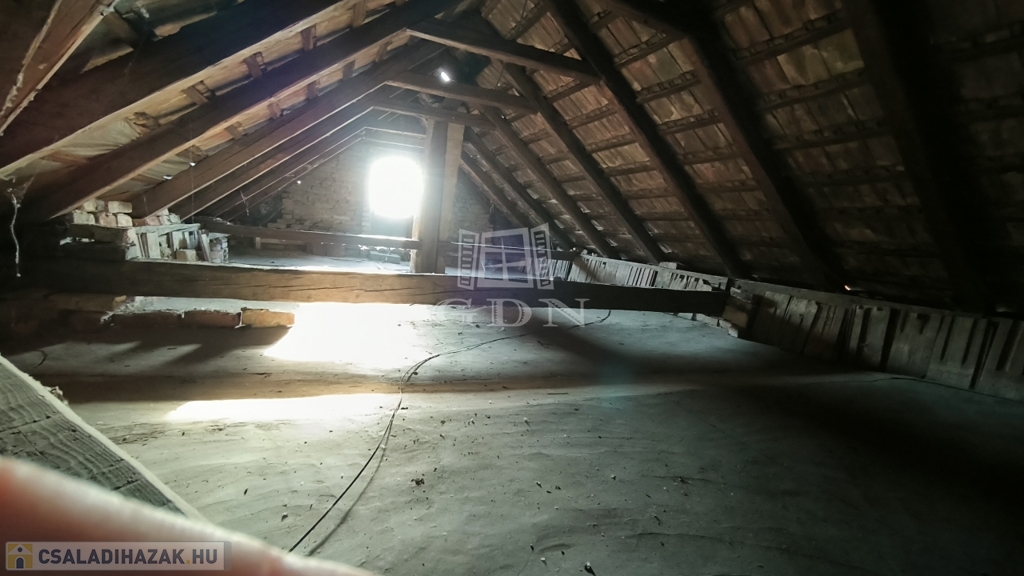 A tetőtér tiszta, a gerendázat masszív, akár lakhatásra, tárolásra is használható.