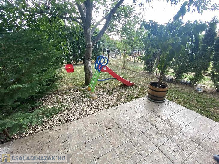A 434nm-es kert karbantartott, hátul sütögető sarok lett kialakítva, mögötte pedig egy 31,5 nm-es garázs.