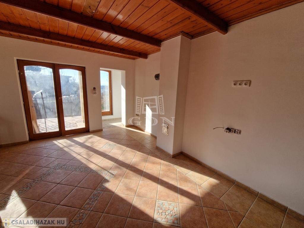 Felső szinten egy közlekedő, 3 szoba és terasz nyílik a dunai panorámára.