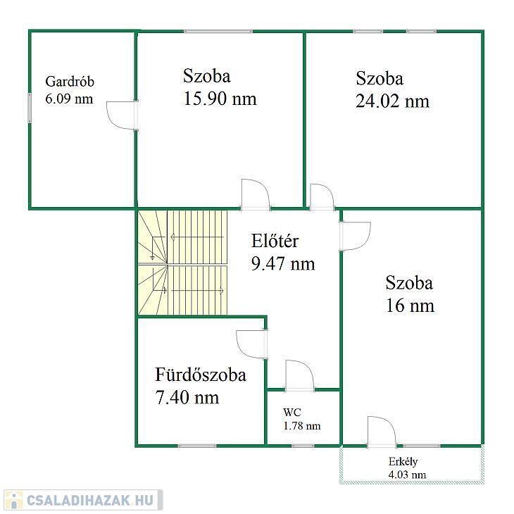 Az ingatlan 172 nm összterületű, ebből 139 nm lakótér. A kialakítás kifejezetten jól használható: négy hálószoba, amerikai konyhás nappali, gardrób, két fürdőszoba + külön WC biztosít elegendő teret akár nagyobb családnak vagy több generációnak is.