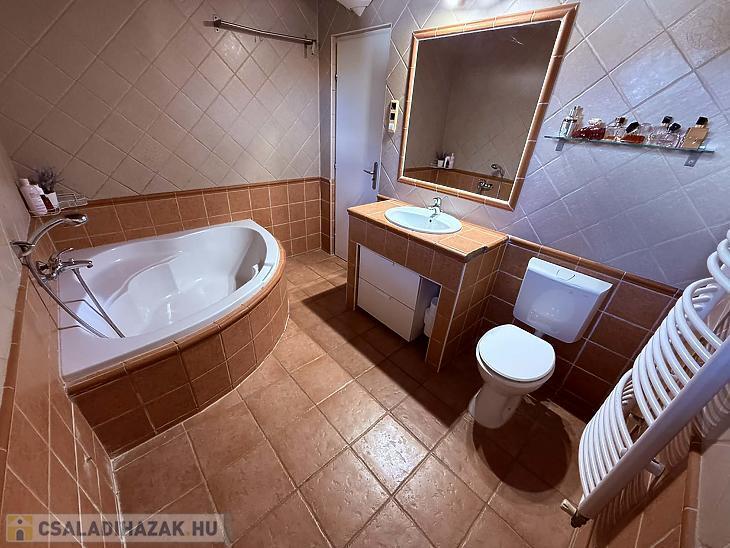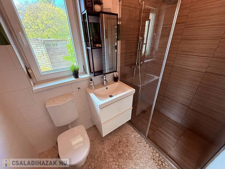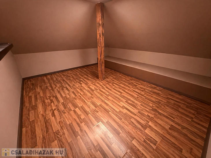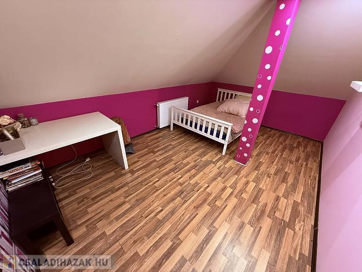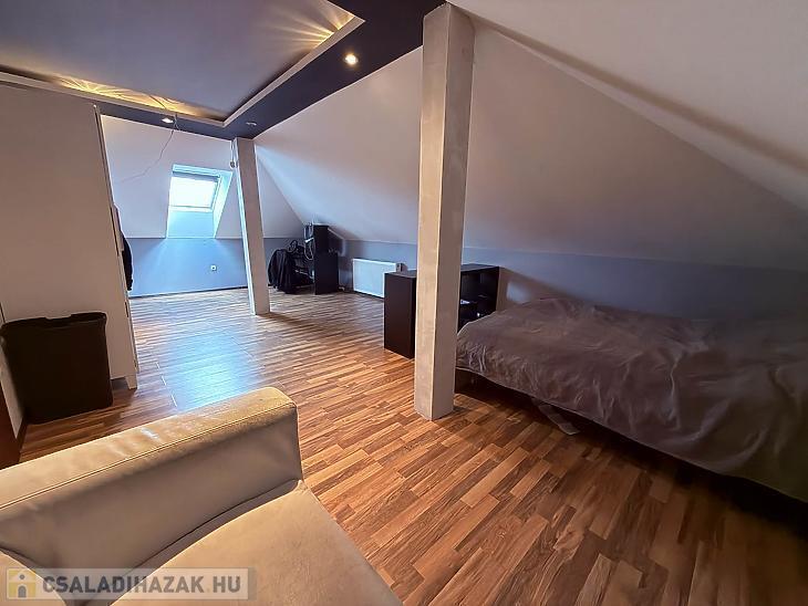 Az emeleten közlekedő és három külön nyiló szoba került kialakításra, így a ház ideális nagyobb család számára is. A fütést kondenzációs kazán biztosítja, a hidegburkolatos helyiségekben padlófűtéssel, míg a többi helyiségben radiátoros hőleadással. A 10 cm-es szigetelésnek köszönhetően a ház fenntartási költsége kedvező. A dél-nyugati fekvésnek köszönhetően a ház egész nap világos, napfényes.