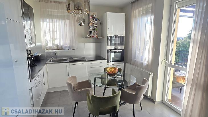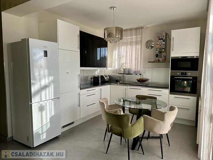 Eladásra kínálunk Dunakeszi közkedvelt részén, a Toldi lakóparkban egy bruttó 132 m²-es, kertkapcsolatos ikerházat, amelyből csodás panoráma nyílik a budai hegyekre.