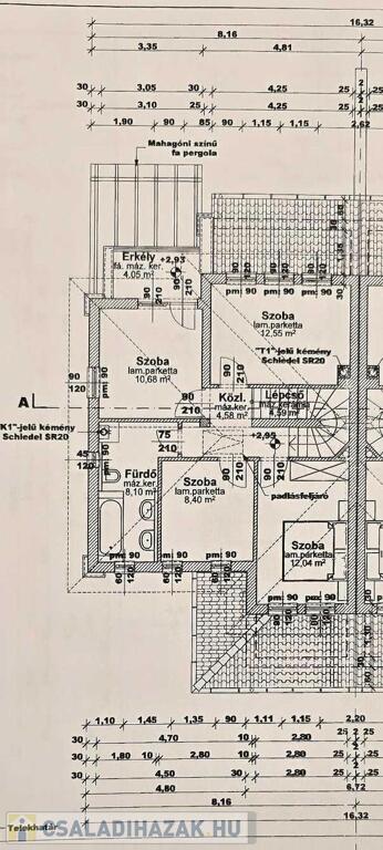 Az emeleten egy kényelmes méretű fürdőszoba, közlekedő és négy praktikus elrendezésű szoba kapott helyet. Kedvező tájolásának köszönhetően a helyiségek egész nap világosak.