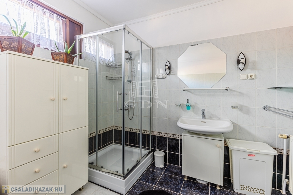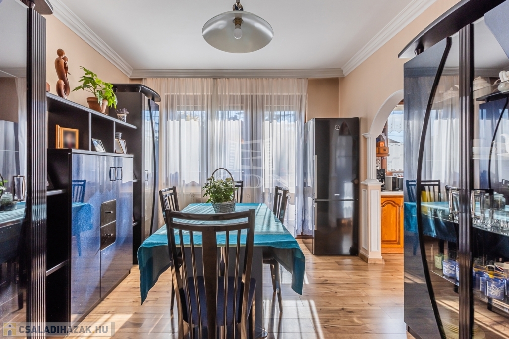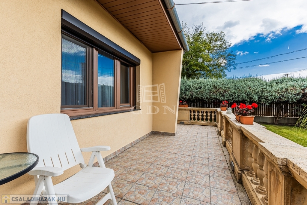 Dunakeszin kínálunk eladásra egy igényesen kivitelezett, szigetelt, dupla komfortos, önálló családi házat, különálló garázzsal, 600 nm-es telken. A földszinten minőségi, gépesített konyha, nappali, két szoba, két fürdőszoba, az emeleten egy nappali és két hálószoba kapott helyet. Egyedi kialakításának köszönhetően, élhető, tágas terek jellemzik, két generáció kényelmes együttélését is biztosítani tudja. A szobákban elhelyezett 4 db hűtő-fűtő klíma, a szuterén szinten háztartási helyiség, egy közösségi tér, tároló és egy finn szauna növelik a komfortot. A ház körül 40 nm-es hangulatos terasz található, a füvesített kerthez automata öntözőrendszer tartozik. Az energiahatékonyságról 5 kw-os napelem rendszer gondoskodik. Ajánlom azoknak akik vágynak egy minden igényt kielégítő, tökéletes otthonra, csendes, szép környezetben és fontos szempont számukra a jó infrastruktúra.
