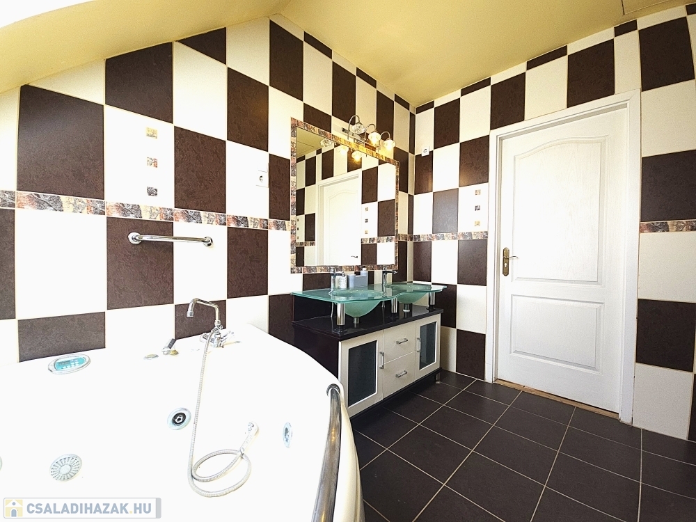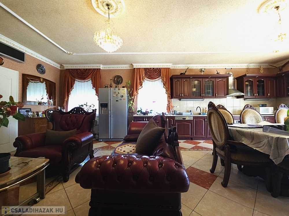 A ház összesen 314nm lakóterülettel rendelkezik, mely két teljes értékű szinten helyezkedik el. Az ingatlan belső elrendezése rendkívül átgondolt és praktikus. Hét teljes értékű szoba és félszoba található benne így tökéletesen alkalmas akár nagycsaládosoknak, kétgenerációs együttélésre, vagy otthoni irodai munkára is. Négy darab, ízlésesen kialakított, minőségi burkolattal ellátott fürdőszoba gondoskodik a lakók maximális kényelméről, mindegyik a mai igényeknek megfelelő színvonalon lett kialakítva. A belmagasság 2,8 méter, ami tovább erősíti a tágas térérzetet és az elegáns enteriőrt.