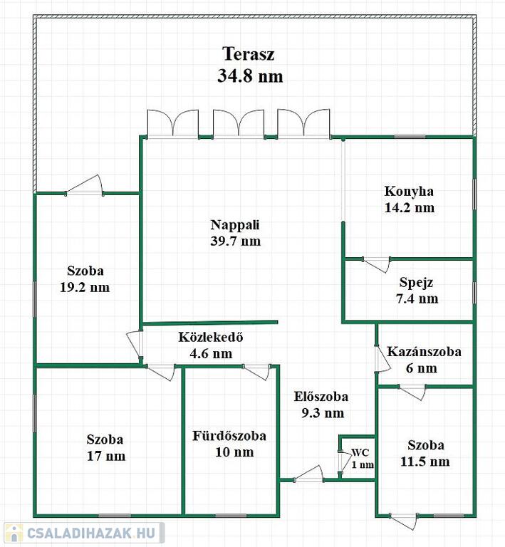 A ház kifogástalan állapotban van, minőségi burkolatok, tágas terek jellemzik.