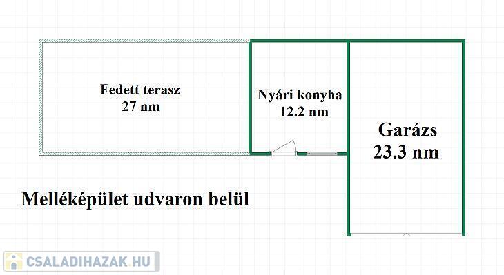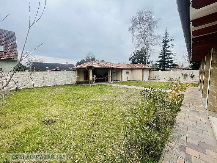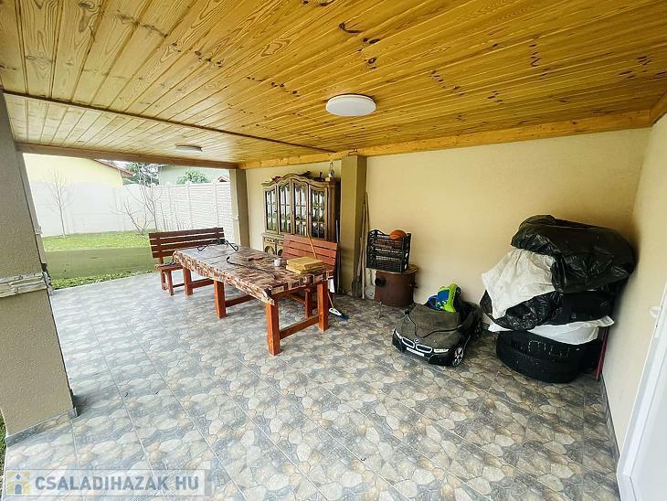 62 nm-es fedett terasz, külön tároló, garázs, nyári konyha és sütőgető.