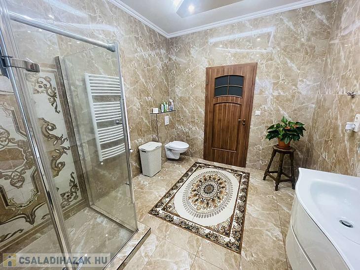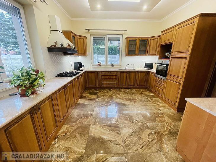 A ház kifogástalan állapotban van, minőségi burkolatok, tágas terek jellemzik.