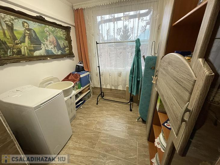 Elosztás: előszoba, konyha–étkező, nappali, zuhanyzós fürdő-WC, mosókonyha.