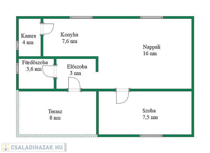 Az elosztás ideális: 24 nm-es amerikai konyhás nappali, egy 7,5 nm-es félszoba, zuhanyzós fürdőszoba, előszoba és egy hangulatos, fedett terasz biztosítja a kényelmes mindennapokat.