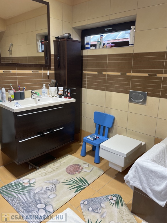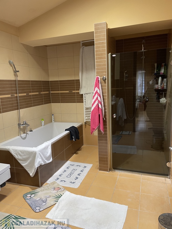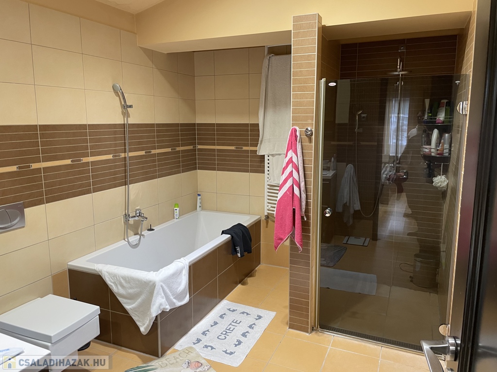 Két szobához tartozik fürdőszoba + wc, egyikben zuhany kabin, másikban fürdőkád és zuhany kabin található. Az előszobánál található egy vendég wc is.