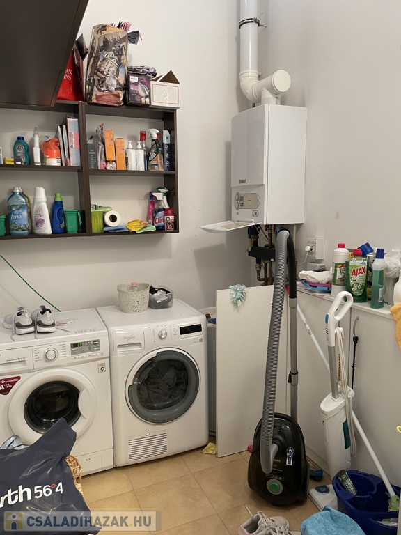 Előszoba, közlekedő, konyha, nappali, étkező, fürdőszobák járólapozva, szobák laminált lapozva, az összes helyiségben padlófűtés van, Vaillant gázkazán biztosítja a ház melegét és a meleg vizet.