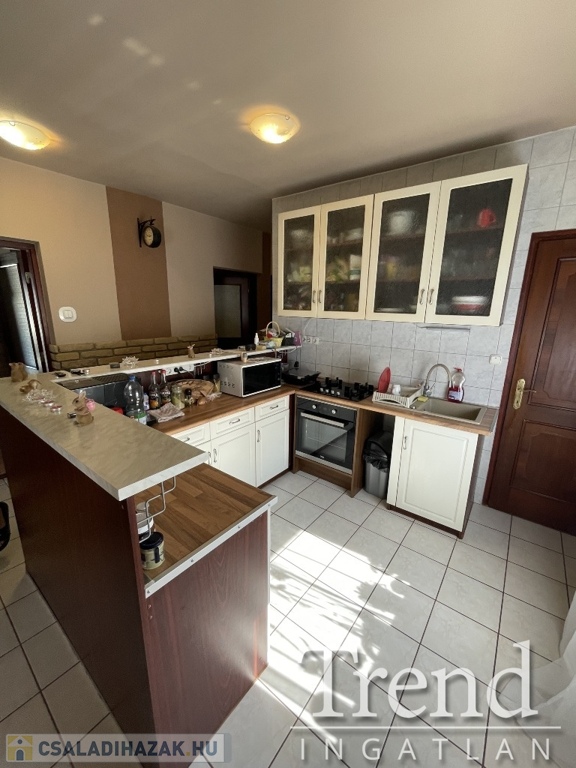 Az utcáról elektromos kapun keresztül lépünk be a térkövezett udvarba. Az épület földszintjén két beállásos nagy terem garázs és tároló helyiségek találhatóak. Az emeletre külső lépcső vezet fel.. A kialakítást tekintve a bejárati ajtón belépve balra wc, külön álló fürdőszoba, lépcsőház a tetőtérbe, majd a konyha ami a nappalival egy légtérben van, és a három külön bejáratú szoba az utcára néznek találhatóak meg. Mindegyik szobába, illetve a nappaliba új hűtő-fűtő klímák kaptak helyet, ezek mellett a fűtést kombi gázkazán biztosítja radiátor hőleadókon keresztül. Az összes nyílászáró cserélve, redőnyözve. A tetőtérben két szoba, fürdőszoba, wc kialakítható! A villamos hálózat felújítva, 3x32A-re bővítve, H tarifa bekötve. Az ingatlan 1984-ben épült Poroton és B 30-as téglából, a tető cseréppel fedve. A telek mérete 672 m2.