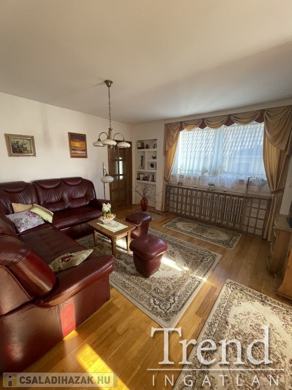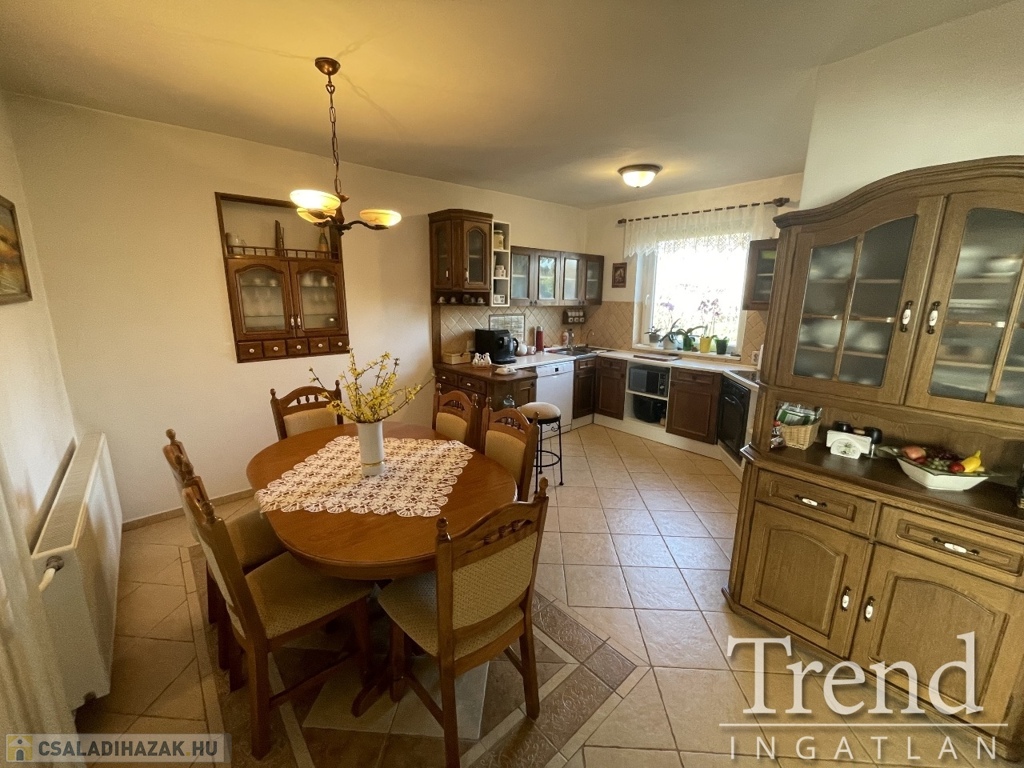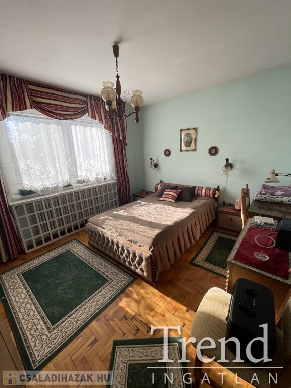 Az ingatlan egyik része 1984-ben épült, majd 1987-ben bővítették, falazata B30-as téglából készült, a tető 2007-ben lett felújítva, új héjazatot kapott Bramac cseréppel lett fedve. A földszinten előszoba, nappali, közlekedő folyosó, két nagy méretű hálószoba, étkező + konyha, fürdőszoba (sarokkád), külön álló wc található. Az emeleten nappali, két szoba, gardrób szoba, fürdőszoba (zuhany+wc), terasz kapott helyet. A földszinten az összes nyílászáró ki lett cserélve, az emeleten az utca felől még az eredetileg beépítettek vannak, a kertre nézők cserélve lettek. A fűtés vegyes tüzelésű kazánról, illetve 3 éve beépített BOSCH kondenzációs gázkazánról működik radiátor hőleadókon keresztül.