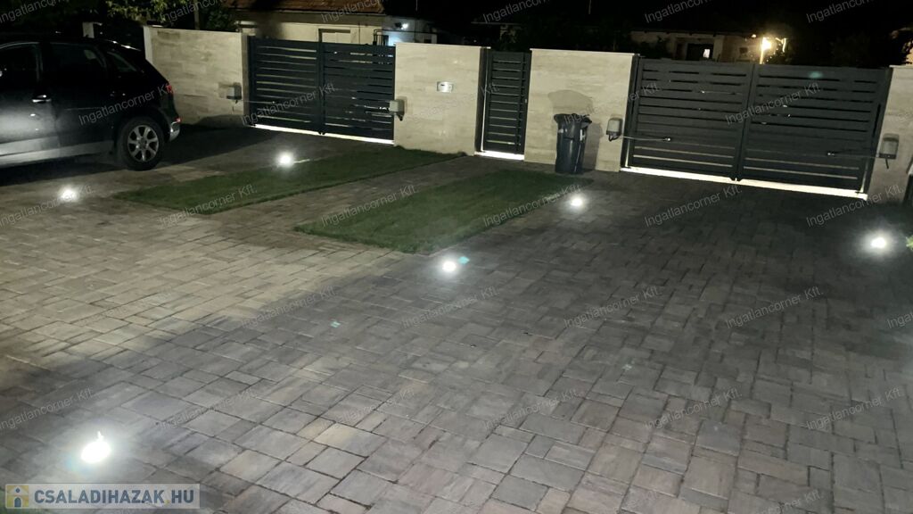 A ház egy 720 m²-es, összközműves telken fekszik, gondosan kialakított, ápolt kerttel, kocsibeállóval, elektromos kapuval, díszburkolattal és igényes kültéri világítással. A telek mérete lehetővé teszi akár további építmények elhelyezését is.