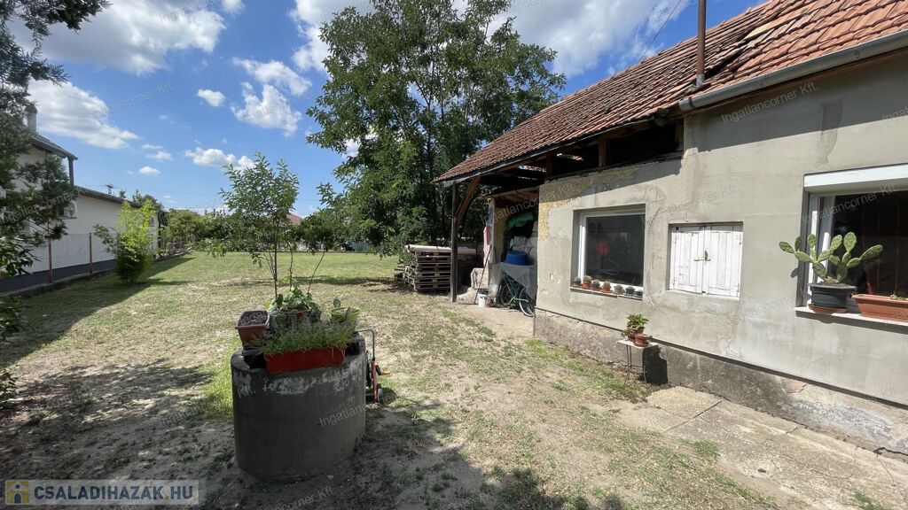 A tágas udvaron termő gyümölcsfák biztosítják a természet közelségét, a terület pedig ideális akár kertészkedésre, akár további fejlesztésre is.