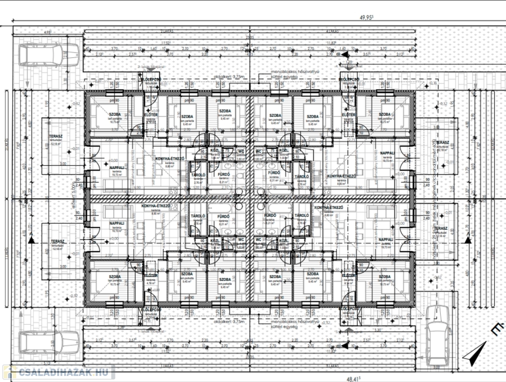 - lakásonként 1 autónak térkövezett beálló, egyéb rész murvázva,