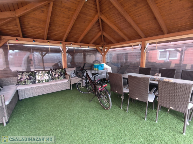 A térkövezett udvarban található a nagy méretű, téliesíthető filagória, amelyet a vételár tartalmaz.