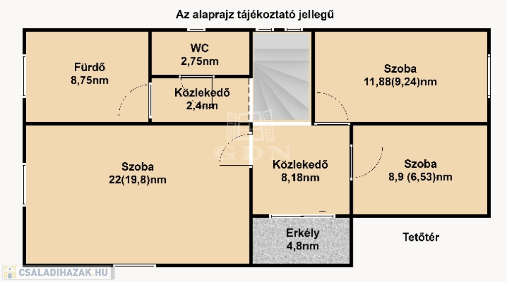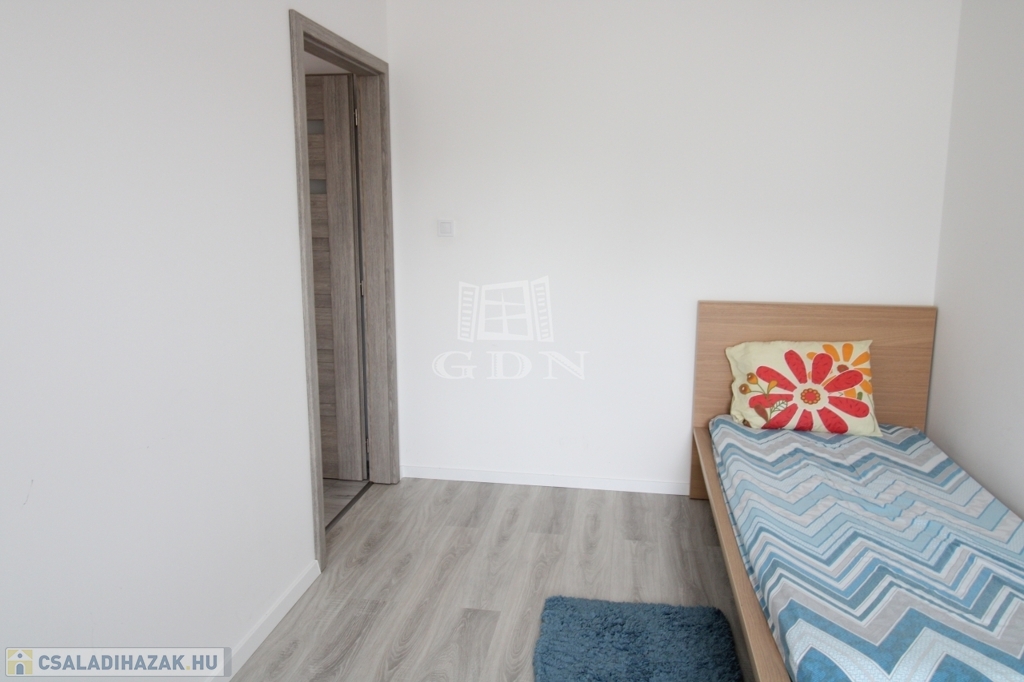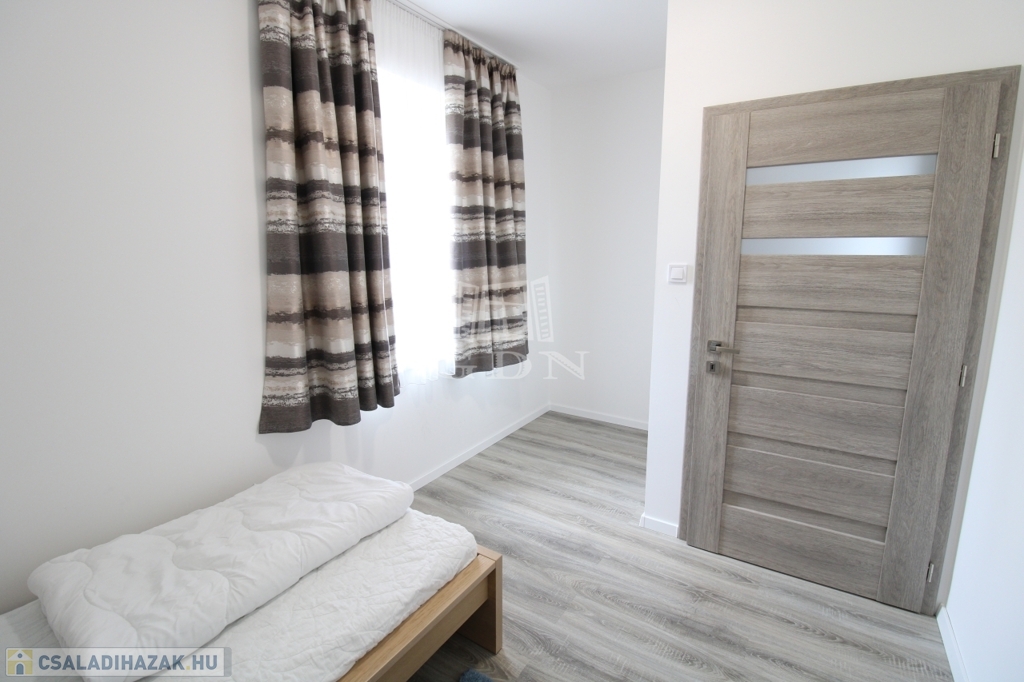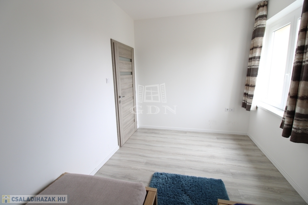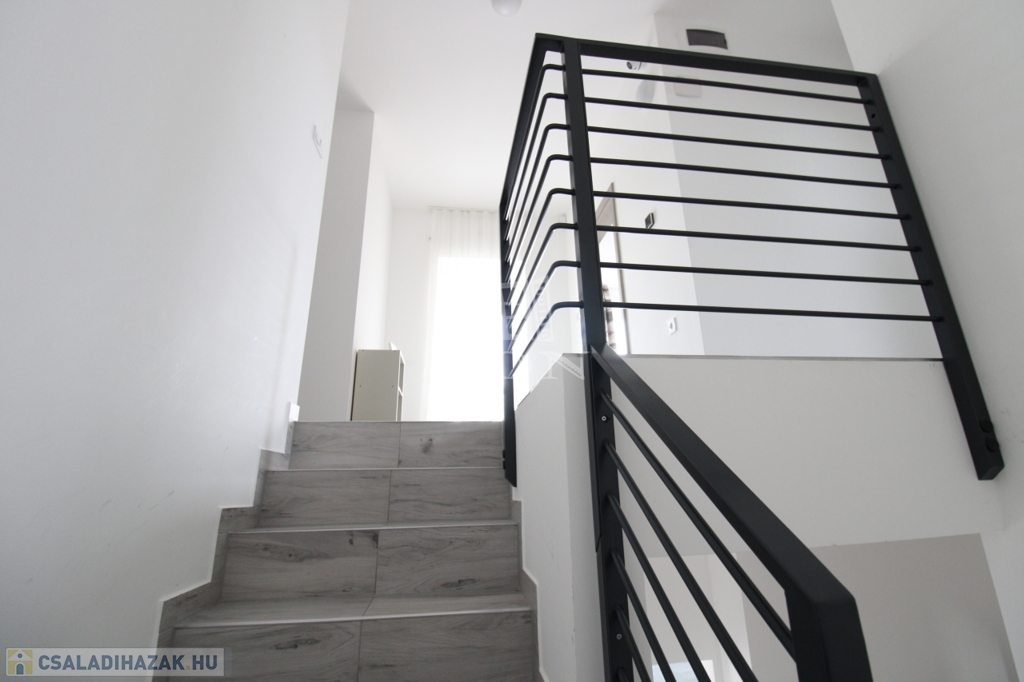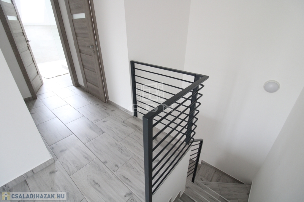 Felső szintre kényelmes fokkiosztású stabil lépcsőn és világos lépcsőházon keresztül juthatunk fel. Ezen a szinten egy 22nm (hasznos 19,8nm) szoba és két félszoba 11,8nm (hasznos9,24nm), 8,9nm (hasznos 6,53nm), 8,75nm-es fürdőszoba, 2,75nm illemhely, illetve 10,6nm közlekedő lett kialakítva. A közlekedőből juthatunk fel a 30nm nagyságú padlásra.