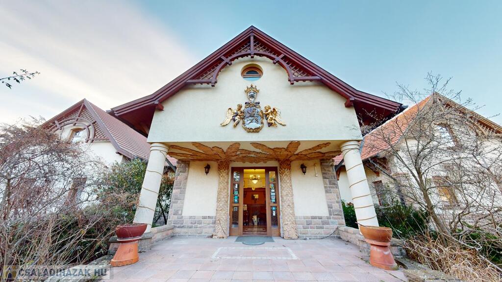 Egerben, a Türk Frigyes utca végén, 3282 nm-es telken, 2002-ben épült 616 nm nettó hasznos alapterületű, D-Ny-i tájolású, alagsor, földszint + emelet szintmegosztású, 44 és 38 cm-es porotherm téglából, monolit vasbeton födémmel épült, kétrétegű hőszigetelt nyílászárókkal felszerelt ház, 2 állásos garázzsal, komplett wellnessrésszel, medencével, összesen 235 nm teraszokkal, parkosított udvarral együtt eladó.