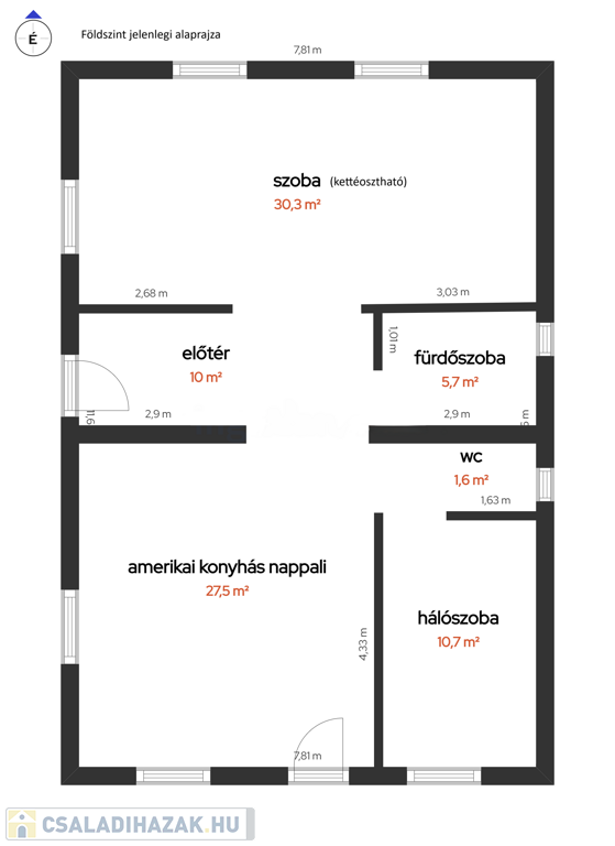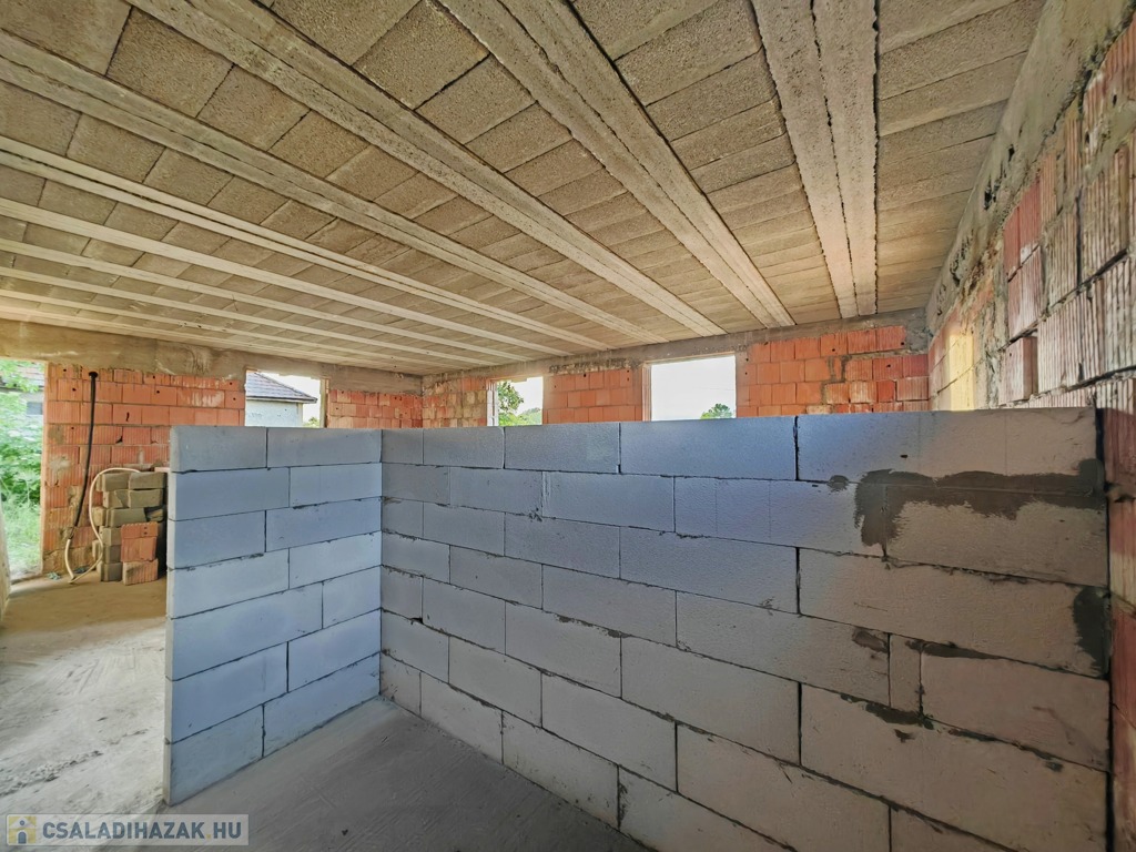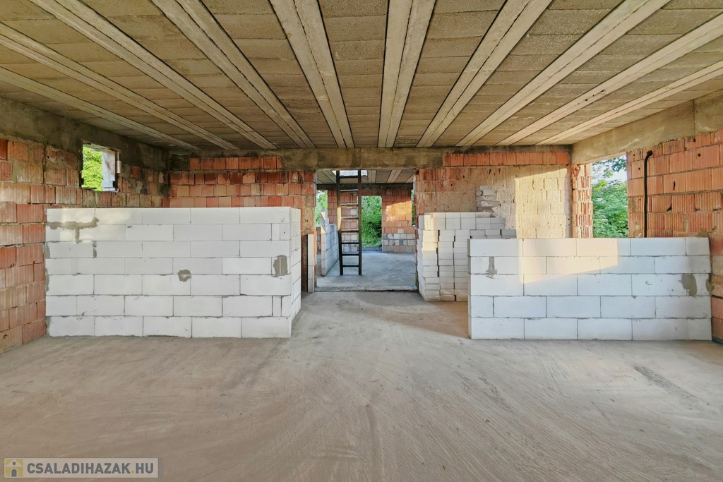 Az alaprajzon feltüntetett helyiségek legtöbb esetben megváltoztathatóak, illetve akár méretben is alakíthatóak, mivel a válaszfalak még csak részben állnak. A földszint nettó alapterülete 86 m2, és jelenleg ugyanennyivel lehet számolni az emeleti részen is (a végleges méret beépítés függvénye).