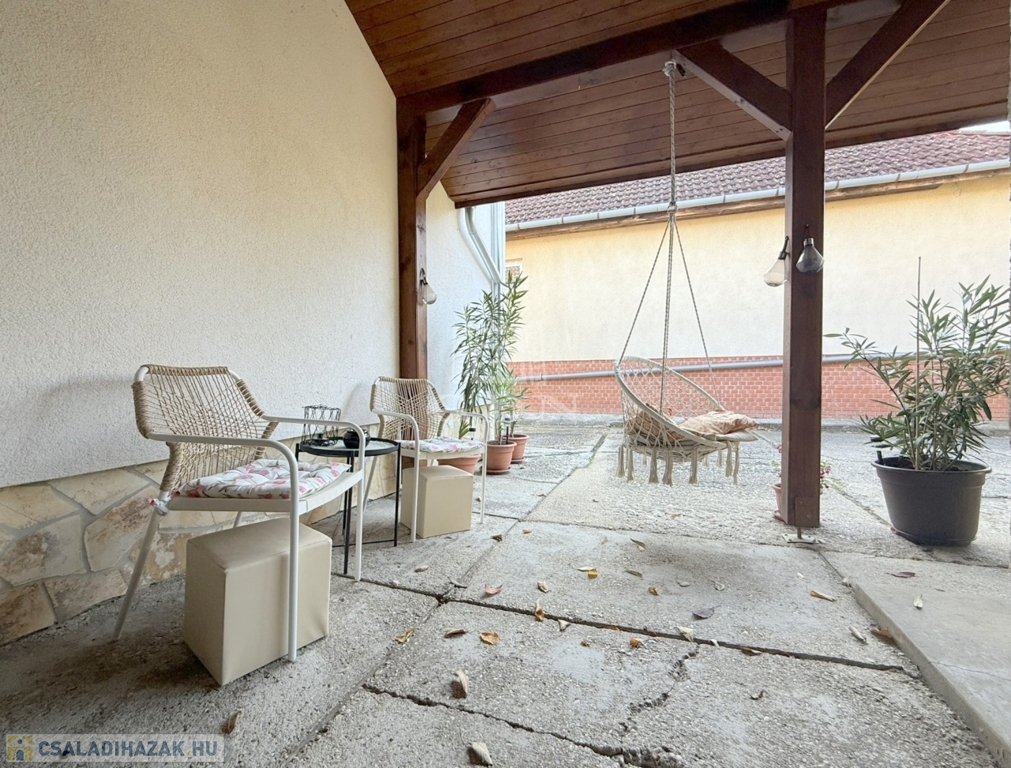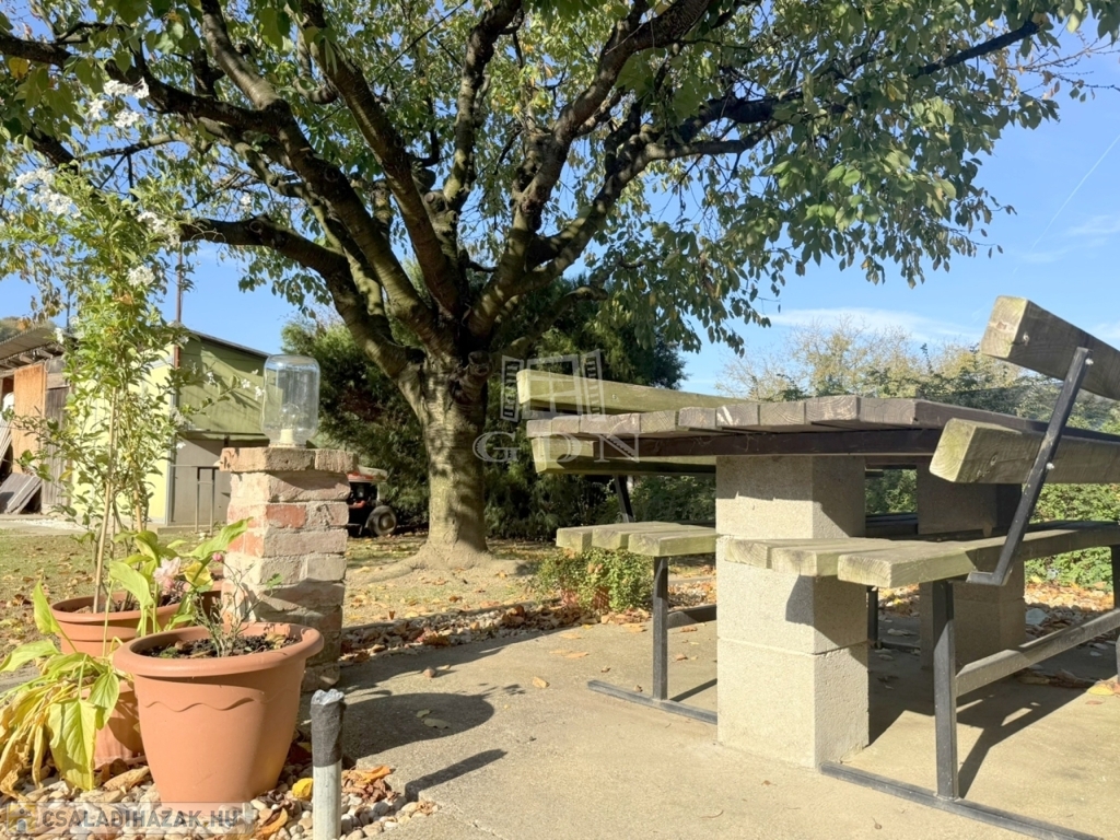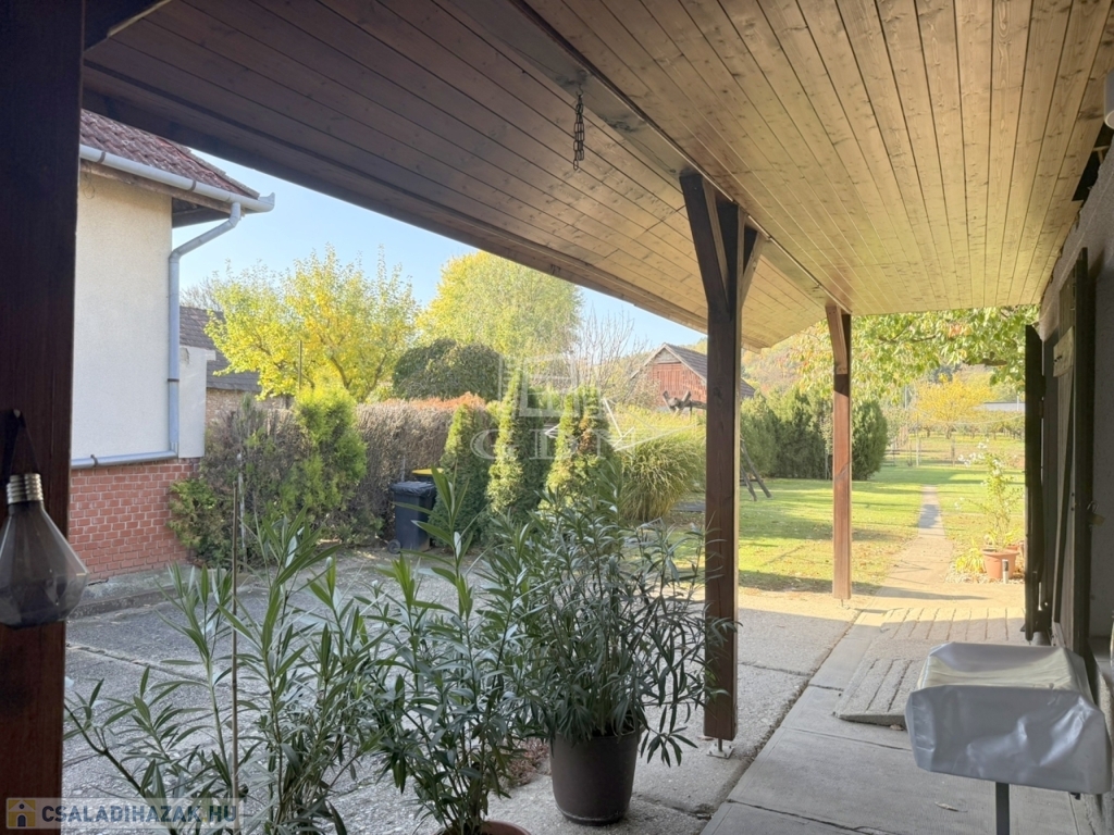 Az itt élő felnőttek kényelméért egy lelapozott, közművesített, 40 m2 - es nyárikonyha,