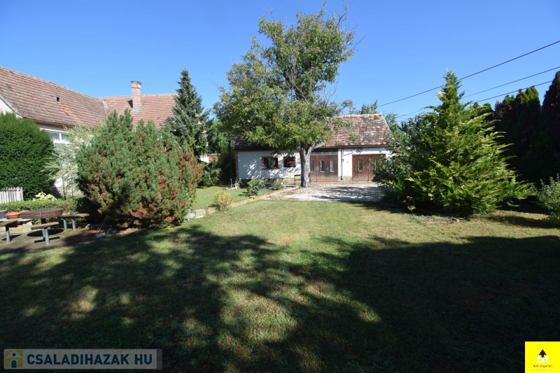 Az 1500 m2-es saroktelken van kút kerti kiülő, garázs és egy kb. 50m2 műhely is. A telek gondozott és körbe kerített. A kert egy része gyümölcsfákkal van beültetve.