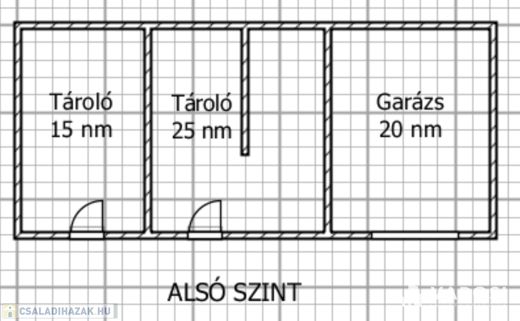 Az alsó szinten 2 nagy tároló és 1 tágas garázs kapott helyet.