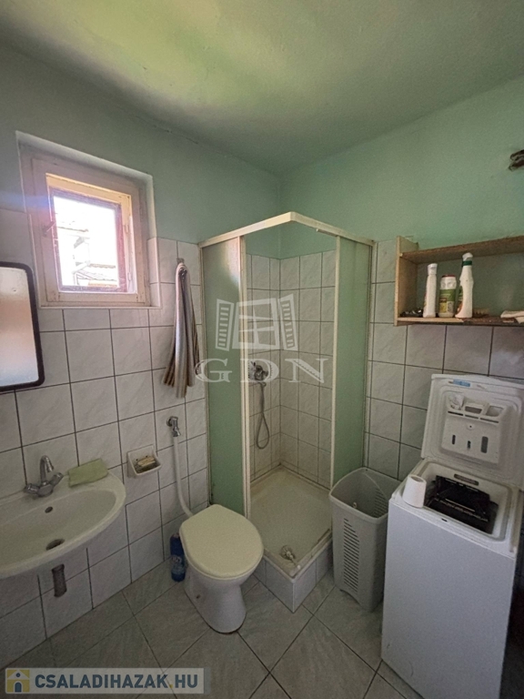 Az előkertes ingatlanban 2 szoba, előszoba, konyha, étkező, kamra és fürdőszoba került kialakításra.