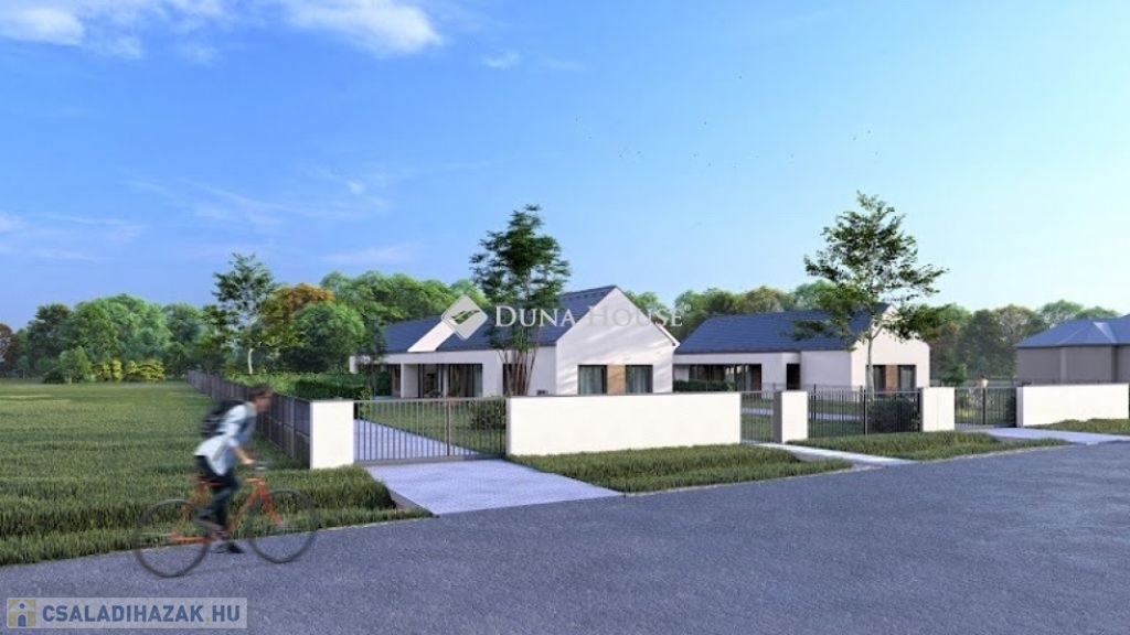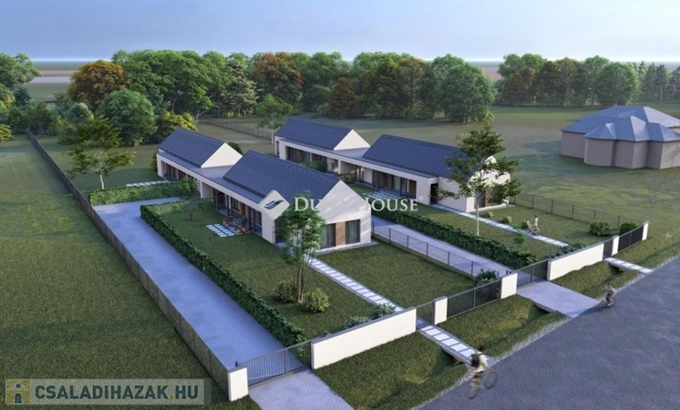 A település egyik rendezett utcájában kerülnek kialakításra az igényes megjelenésű, magas műszaki tartalommal bíró házak. Telkenként két lakóegység kerül kialakításra egymástól teljesen elválasztva, egyenként kizárólagos használatú kertekkel. A lakóépületek nettó alapterülete 90,39 nm, közéjük 1-1 autó elhelyezésre szolgáló, (25,4 m2) fedett autóbeálló kerül. A házak itt érnek össze, lakóhelyiség falai nem érintkeznek egymással, továbbá egy-egy felszíni gépkocsibeálló is kialakításra kerül. A házak mindegyikénél nyitott 20,4 nm alapterületű tornác jellegű fedett terasz szolgálja a teljes kényelmet, közvetlen kapcsolattal a nappaliból.