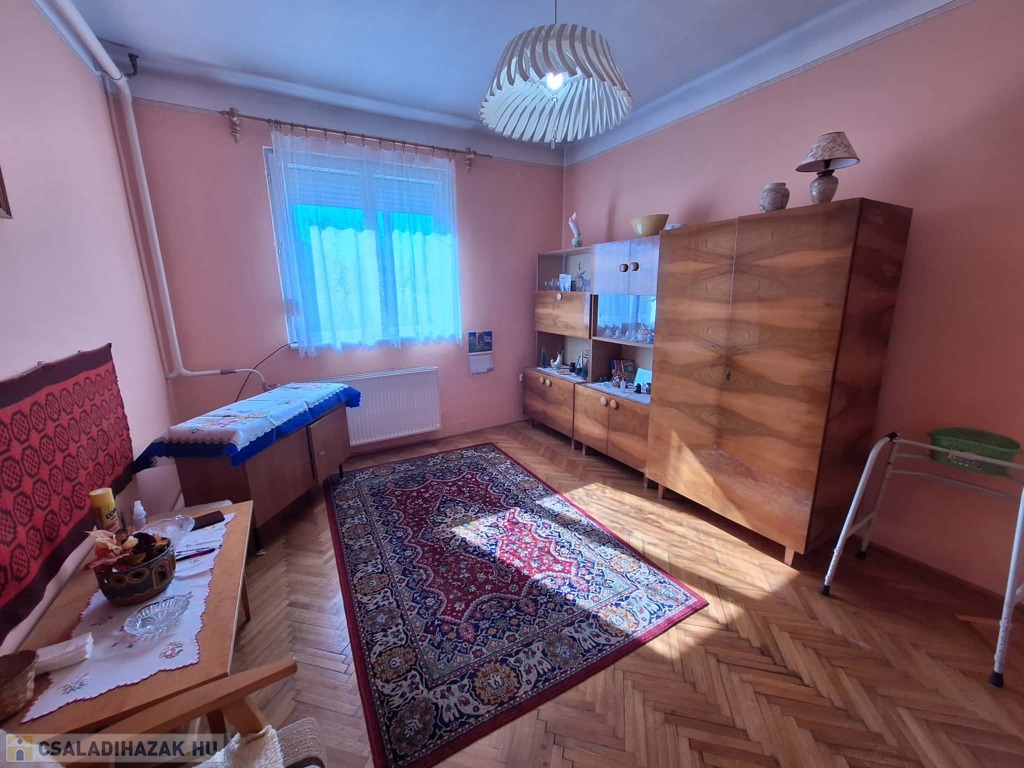 A szobák megkímélt állapotú faparkettával, a többi helyiség járólappal burkolt, a falak festettek.