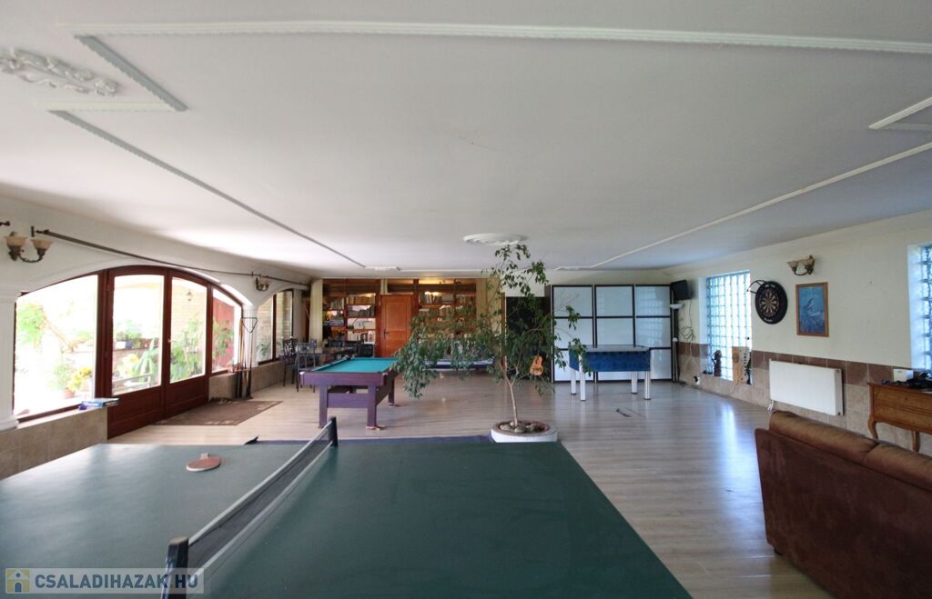 Az ingatlan különlegessége az igényes kivitelezése mellett, a tágas belső terek, egyedileg készített fa nyílászárók és egy beltéri 120 m²-es medencetér.