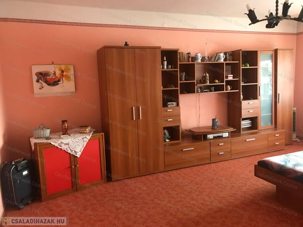 ELADÁSRA KÍNÁLOM ezt a Győrtől 16 km.-re Enese központjában található családi lakóházat, melléképületekkel !Az eladó ingatlan a település központi részén található, kiváló közlekedési kapcsolatokkal, közel mind az M85-ös gyorsforgalmi csatlakozásához, mind a 85-ös főúthoz. Csendes nyugodt lakókörnyezetben, gondozott porták között.A lakóház nagyon sokoldalú, lehetőségeket hordoz magában. Az épület földszintjén van egy szerelőaknás garázs, egy vegyestüzelésű kazán is. A bejárat előtti teraszról juthatunk az előszobába, innen nyílik egy földszinti nappali minibárral, kandallóval, TV-vel . Ezen a szinten található még egy zuhanyzós wc. Egy lépcsőkarral juthatunk az első szintre, ahol egy tágas, gépesített étkező-konyha, kamra, egy étkezővel berendezett közlekedő helyiség és egy fürdőszoba is van. A gázkazán is a konyhabútorba lett beépítve, természetesen szellőzéssel. Innen egy fél szinttel feljebb került kialakításra kettő nagyméretű háló, melyekről kijuthatunk az erkélyre és egy különálló wc-t is létrehoztak. A helyiségek tágasak, jól használhatók. Alkalmas nagy családosoknak, két generáció elkülönült együttélésére is.Szerkezetileg 1980.-.ban épített jól megépített téglaház, műanyag hőszigetelt üvegezésű nyílászárókkal. A burkolatok megfelelőek. A fürdő és wc szaniterek szépek, felújítottak.A melléképületekben lakatos műhely működött.Amennyiben szeretne többet megtudni az ingatlanról, hívjon bármikor, kérésre tudok több képet is küldeni, valamint egyeztetés alapján bármikor megnézhetjük együtt.Simon Kázmér 30 216 5557