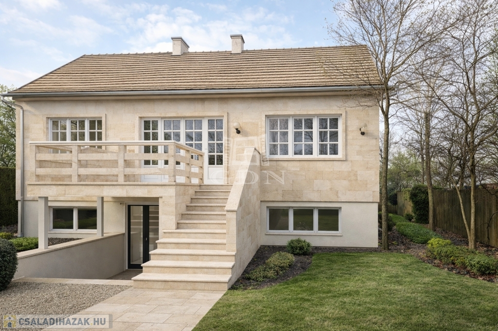 Érd egyik legkedveltebb városrészén, Tusculanumban, aszfaltos utcában kínálunk eladásra egy kiváló adottságú, kétszintes (félszuterén + magasföldszint), 2 nappalis, 6 szobás, dupla komfortos, önálló családi házat, amely tökéletes választás többgenerációs otthonnak, vállalkozás működtetésére vagy akár biztos befektetésnek is.