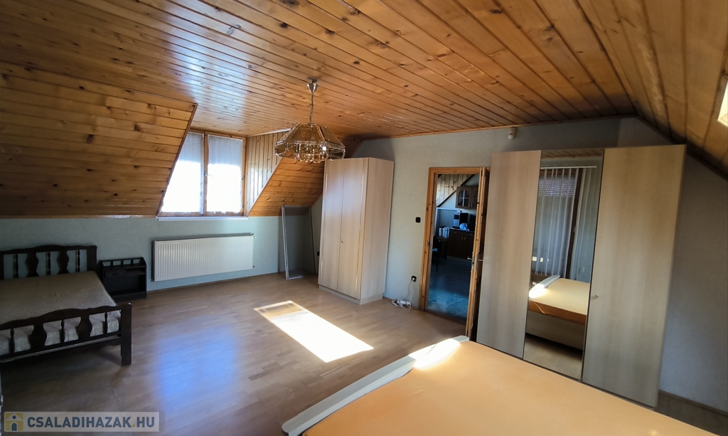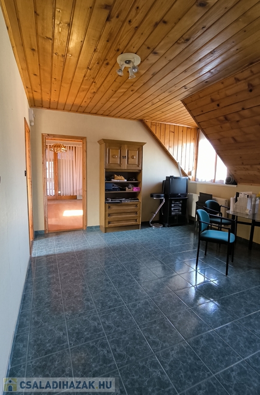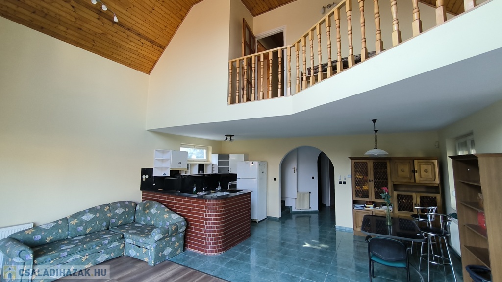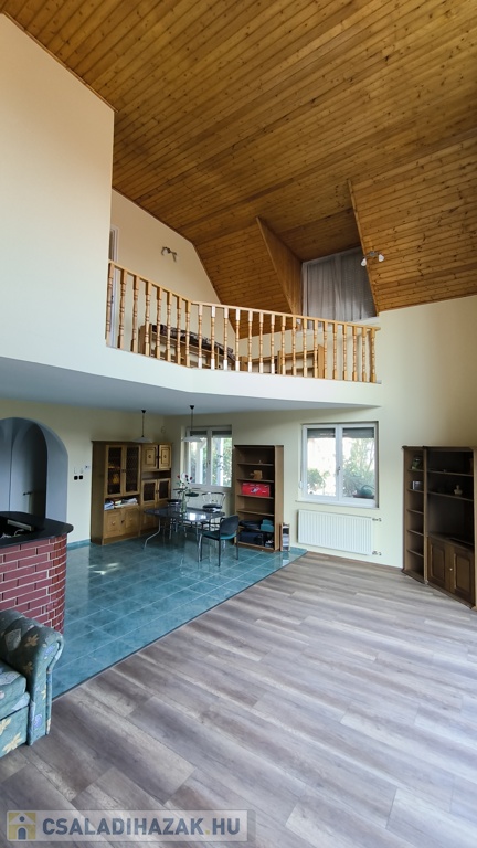 Eladó Érd legjobb részén, Érdligeten, azonnal költözhető családi ház! Az épület tágas, napfényes, 176 m2 hasznos alapterületű. A kertes családi ház gáz-cirkó fűtéses, ?rezsivédett?, kényelmes, bármikor költözhető. Fedett tornácát és alsó szintjét felújíttatták. A földszinten galériás nappali-étkező, hálószoba, külön WC és fürdőszoba található. A folyosóról kamra és a nagy, szerelőaknás garázs nyílnak. Az emeleten dolgozó és könyvtár célra használt galéria, saját fürdőszoba, gyerekszoba, gardrób szoba, nappali, és egy igazán tágas, erkélyes hálószoba találhatók.