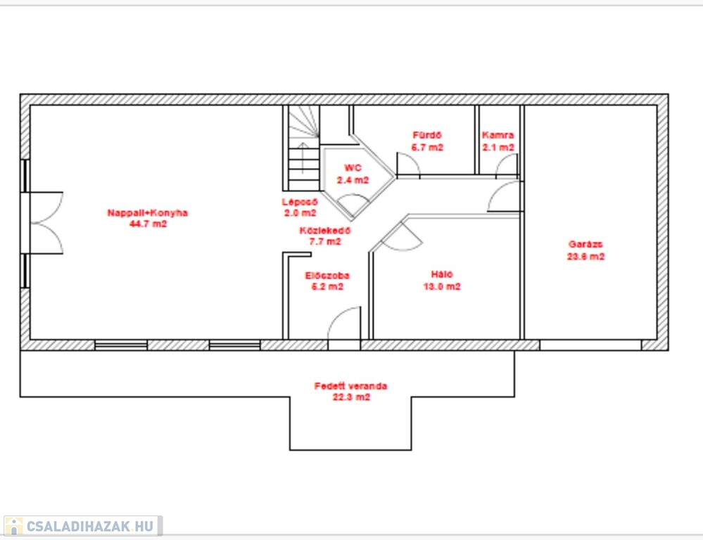 A földszinten egy tágas és világos átriumos nappali található, amely egybe van nyitva a konyhával, így tökéletes tér a közös családi időtöltéshez. Emellett itt kapott helyet egy hálószoba, egy fürdőszoba, valamint egy külön wc. A nappali nagy teraszajtaja elektromos redőnnyel van felszerelve, így a kényelem is garantált. Az egy autó számára elegendő garázs szintén elektromos ajtóval rendelkezik, ami még praktikusabbá teszi a mindennapokat.