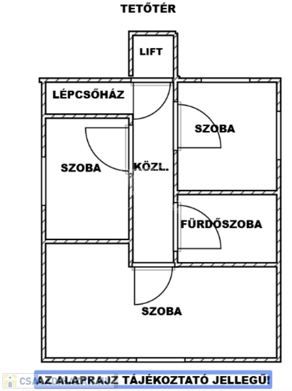 - tetőtér: 3 szoba, fürdőszoba, közlekedő,