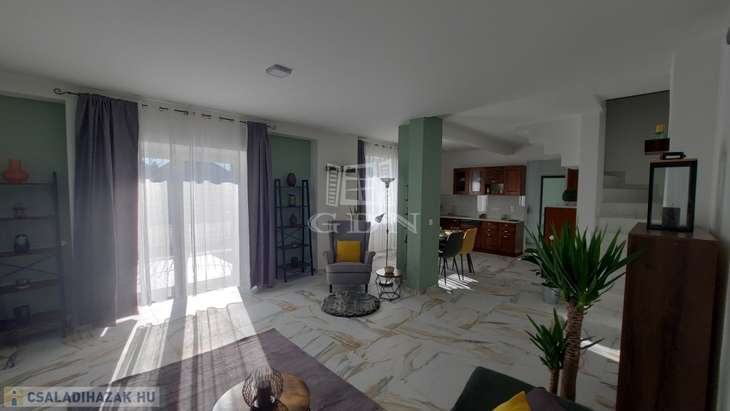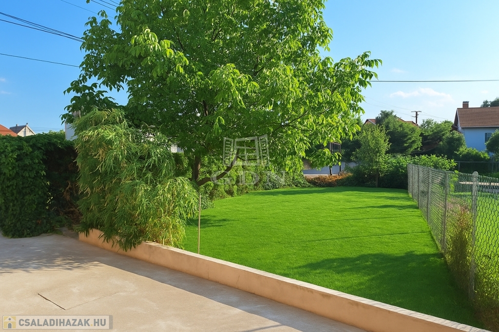 145 m² lakótér + kb. 200 m² saját kert, csendes mellékutcában, pár perc sétára boltoktól, iskolától, tömegközlekedéstől.