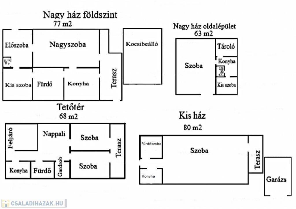 A kisebbik ház 80 nm-s, ami egy hatalmas nappaliból, fürdőszobából és egy szobából áll, amit elkezdtek konyhának kialakítani.