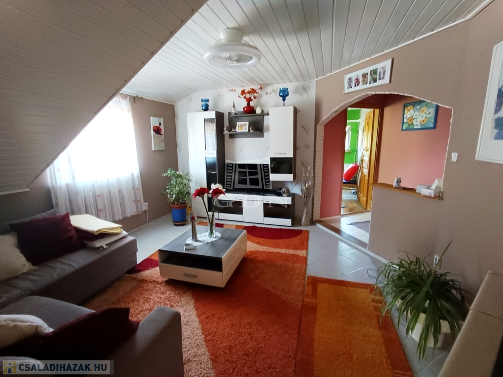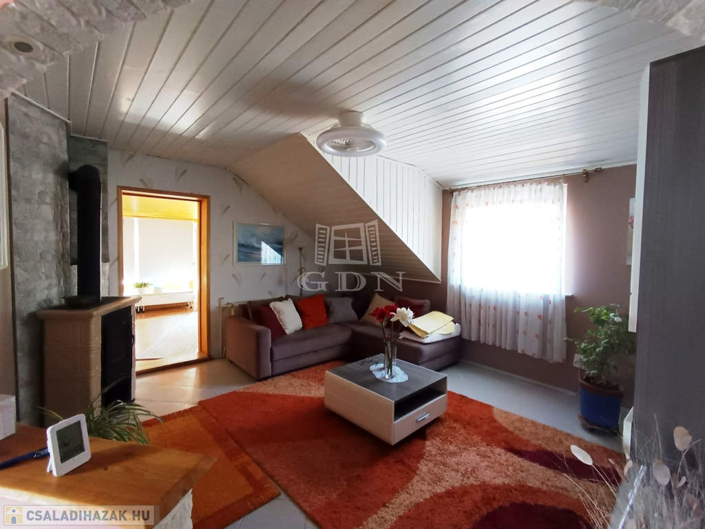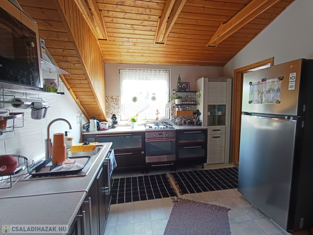 Tetőtér: nappali, 2 szoba, nappali, konyha, fürdőszoba, közlekedő, kamra.
