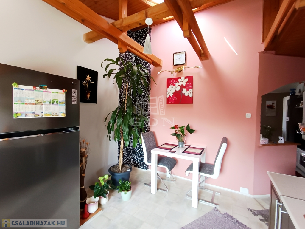A tetőtéri szint jelenleg külső lépcsősoron érhető el, de lehetőség van a belső feljáró visszaállítására is.