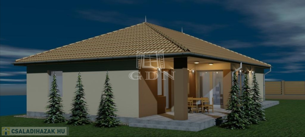 AZ ÉPÜLET beton sávalapra épül. Főfalak 30 cm porotherm téglából készülnek +15 cm dryvit szigeteléssel. Válaszfalak 10 cm téglából. A külső nyílászárók műanyag szerkezetűek, 3 rétegű üvegezéssel ellátva, rejtett redőnytok előkészítéssel. A födém fa szerkezetű, közetgyapot szigeteléssel. A tető cserép fedéssel készül.
