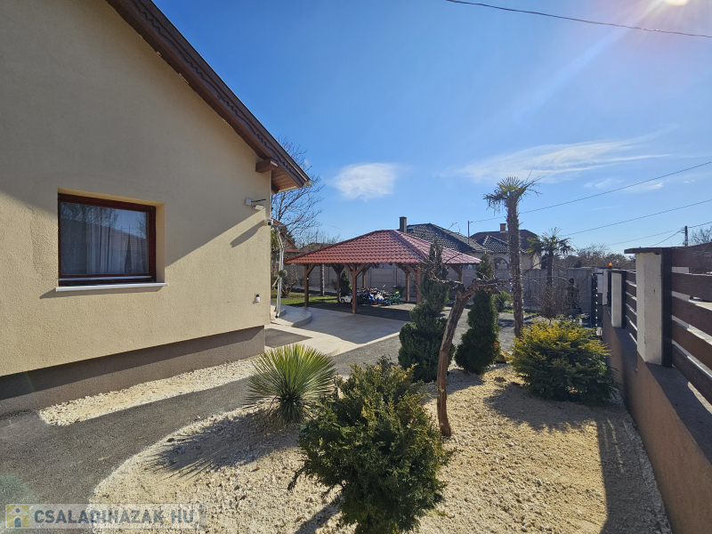 Az épület 717 nm-es összközműves telken található, a kert gyümölcs fákkal,pálmafákkal, cserjékkel beültetett, gondozott!