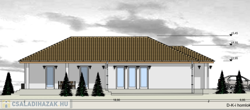 Kiváló adottságú telek előnyeit figyelembe véve alaposan átgondolt tervezés alapján épül az ingatlan benapozottsága optimális.