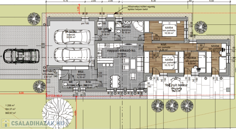 - gépészet, padlófűtéssel, hőszivattyúval