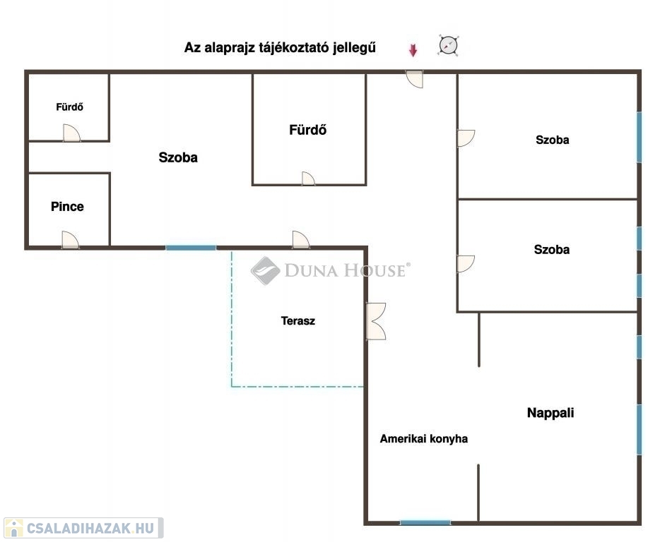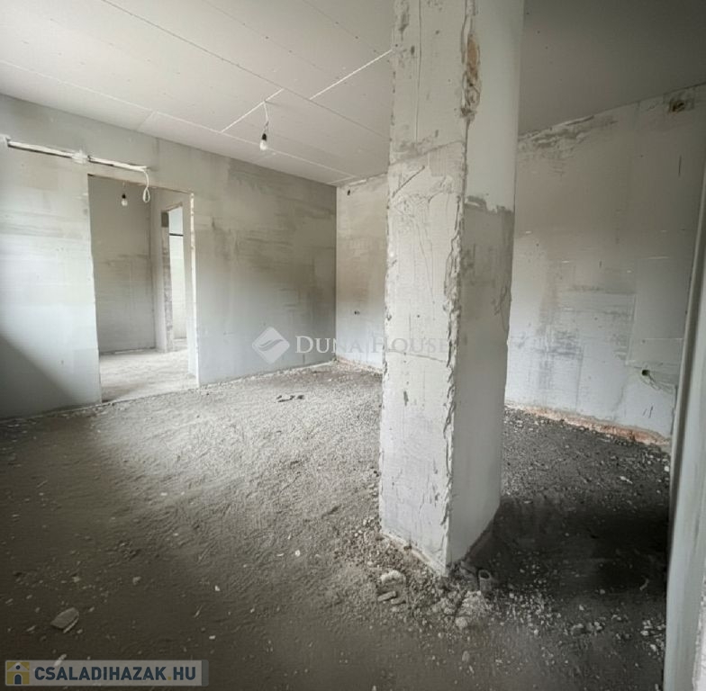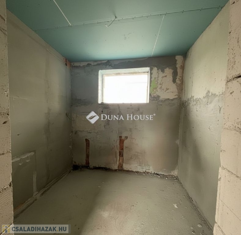 A ház 843nm-es telken található, nappali-étkező-amerikai konyhás, plusz három hálószobás világos, déli-nyugati tájolású fedett teraszos, részben alápincézett.