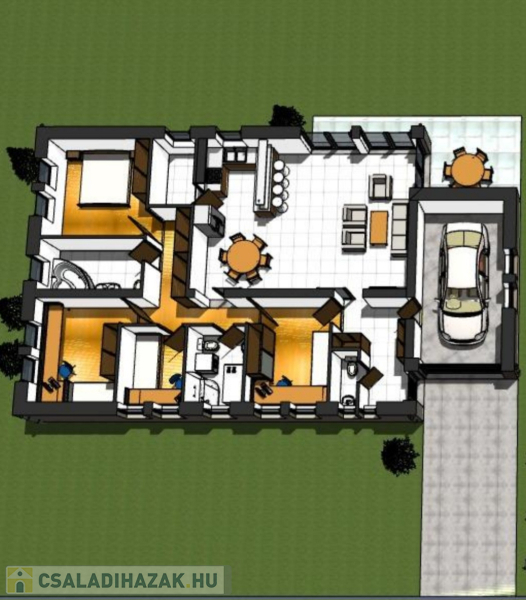 Kiváló adottságú telek előnyeit figyelembe véve alaposan átgondolt tervezés alapján épül az ingatlan benapozottsága optimális.