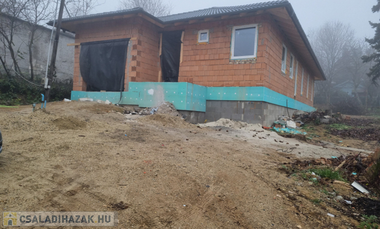 30 cm-es Porotherm főfalak, 10 cm-es tégla belső válaszfalak, tető: betoncserép,