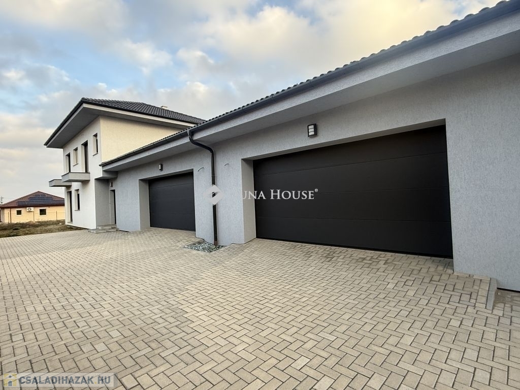 EXTRÁK:- Mennyezet hűtés-fűtés- Elektromos alumínium redőnyök- Térkövezett út - Üvegkorlát- Hörmann elektromos garázskapu