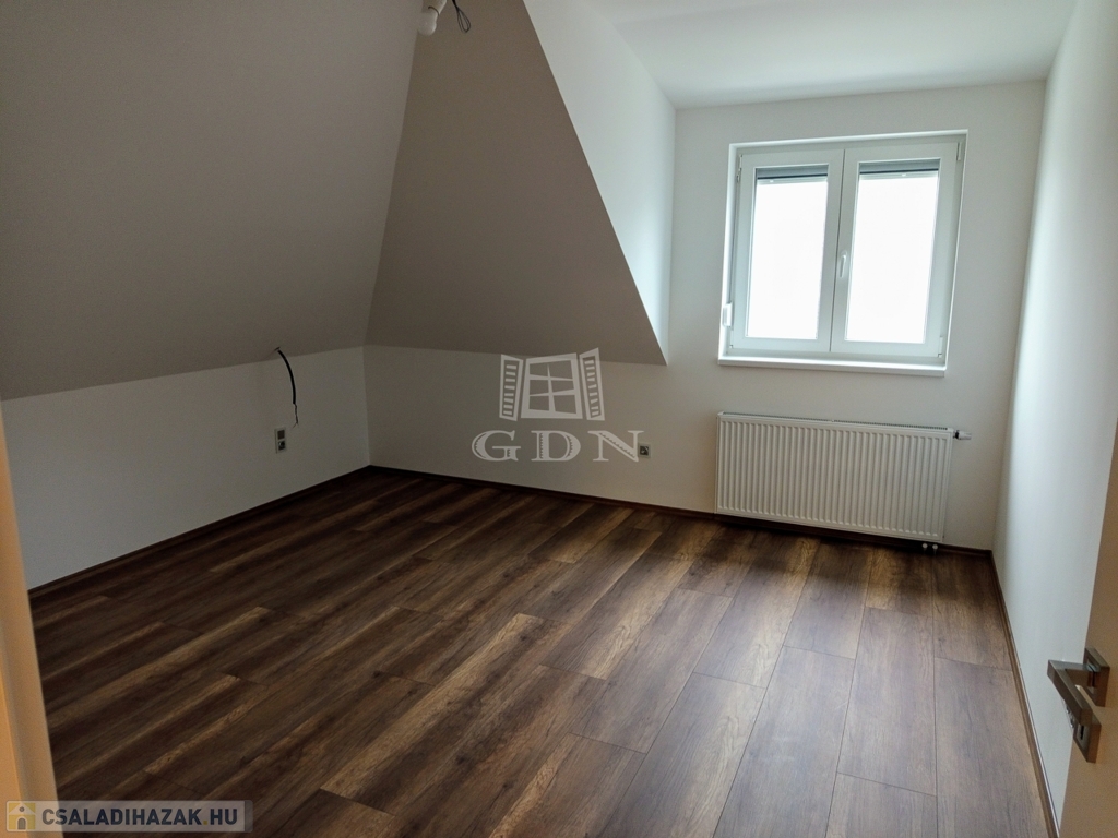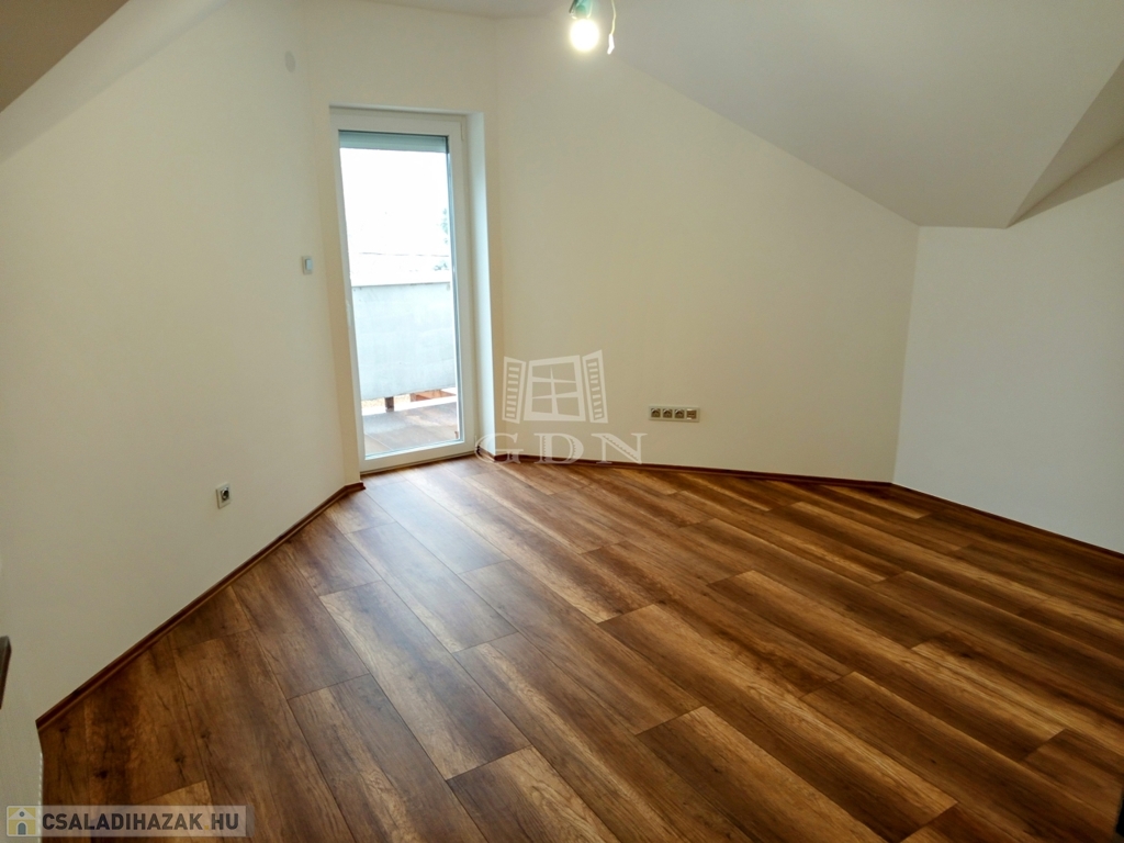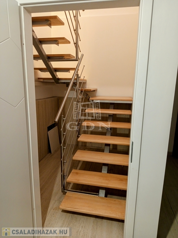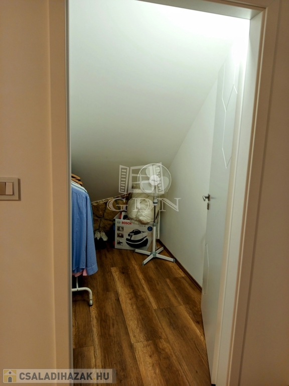 A tetőtérbe a LED égő csíkkal megvilágított lépcsőn jutunk fel. Ezen a szinten három, 20,0 nm, 14,95 nm, 13,5 nm szobát találunk, valamint egy 15,2 nm- es helységet amelyből a felső helyiségek nyílnak. Tea konyha 13,2 nm, gardrób helyiség 2,42 nm, kádas fürdő + WC 17,2 nm valamint egy önálló WC 1,38 nm találunk. A ház bejárata előtt egy 31,0 nm-es fedett terasz van ami alatt egy tároló helyiség került kialakításra.